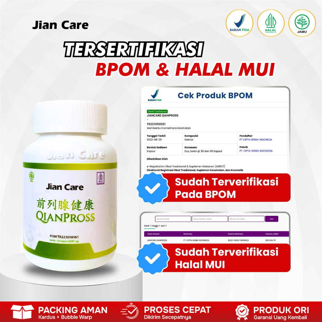 Jian Care Qianpross merupakan ramuan herbal yang terbukti aman & efektif tuntaskan masalah buang air kecil tanpa efek samping.